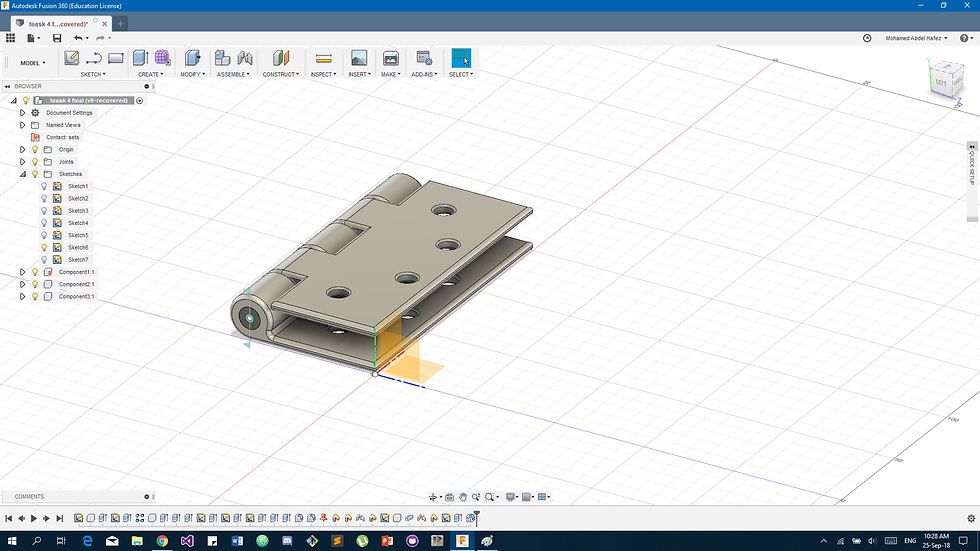 The test is to make a 3D model contain of two or more parts getting together and have a movement and we have a bonce point to make a simulation for the movement, we are going to work on Fusion 360 as for the software to create the 3D model, for me it is the first time to use a designing tool to draw, but wit was a hell of experience, I learned a lot from it, and it was fun along the way.