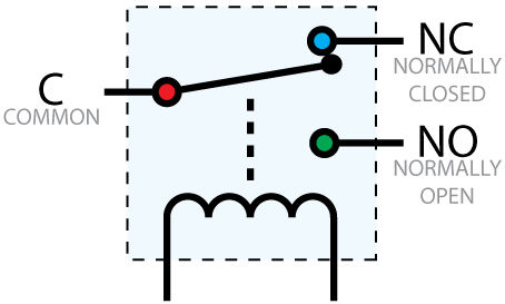 A relay is an electrically operated switch. Many relays use an electromagnet to mechanicallyoperate a switch, but other operating principles are also used, such as solid-state relays. Relays are used where it is necessary to control a circuit by a separate low-power signal, or where several circuits must be controlled by one signal. The first relays were used in long distance telegraph circuits as amplifiers: they repeated the signal coming in from one circuit and re-transmitted it on another circuit. Relays were used extensively in telephone exchanges and early computers to perform logical operations. A type of relay that can handle the high power required to directly control an electric motoror other loads is called a contactor. Solid-state relays control power circuits with no moving parts, instead using a semiconductor device to perform switching. Relays with calibrated operating characteristics and sometimes multiple operating coils are used to protect electrical circuits from overload or faults; in modern electric power systems these functions are performed by digital instruments still called "protective relays". Magnetic latching relays require one pulse of coil power to move their contacts in one direction, and another, redirected pulse to move them back. Repeated pulses from the same input have no effect. Magnetic latching relays are useful in applications where interrupted power should not be able to transition the contacts. They can also have either single or dual coils. On a single coil device, the relay will operate in one direction when power is applied with one polarity, and will reset when the polarity is reversed. On a dual coil device, when polarized voltage is applied to the reset coil the contacts will transition. AC controlled magnetic latch relays have single coils that employ steering diodes to differentiate between operate and reset commands. Since relays are switches, the terminology applied to switches is also applied to relays; a relay switches one or more poles, each of whose contacts can be thrown by energizing the coil. Normally open (NO) contacts connect the circuit when the relay is activated; the circuit is disconnected when the relay is inactive. Normally closed (NC) contacts disconnect the circuit when the relay is activated; the circuit is connected when the relay is inactive. All of the contact forms involve combinations of NO and NC connections, as shown in the figure below.